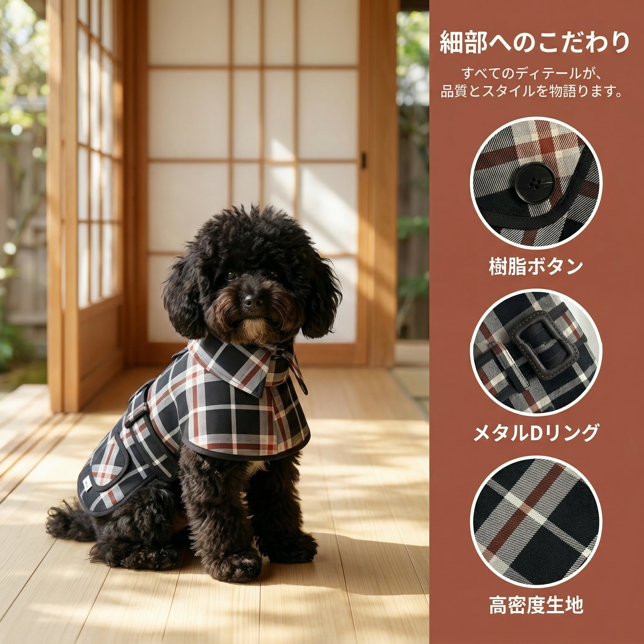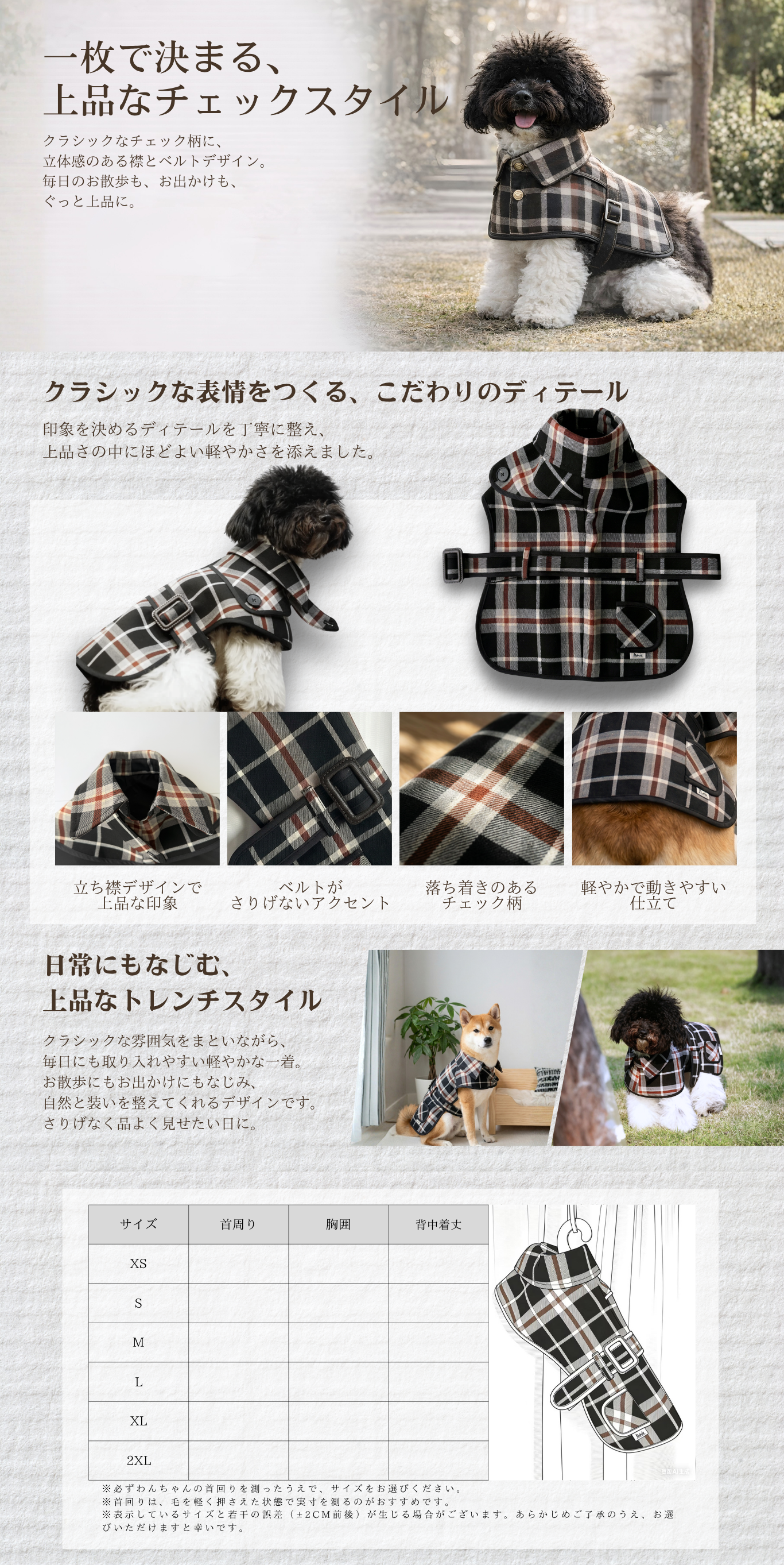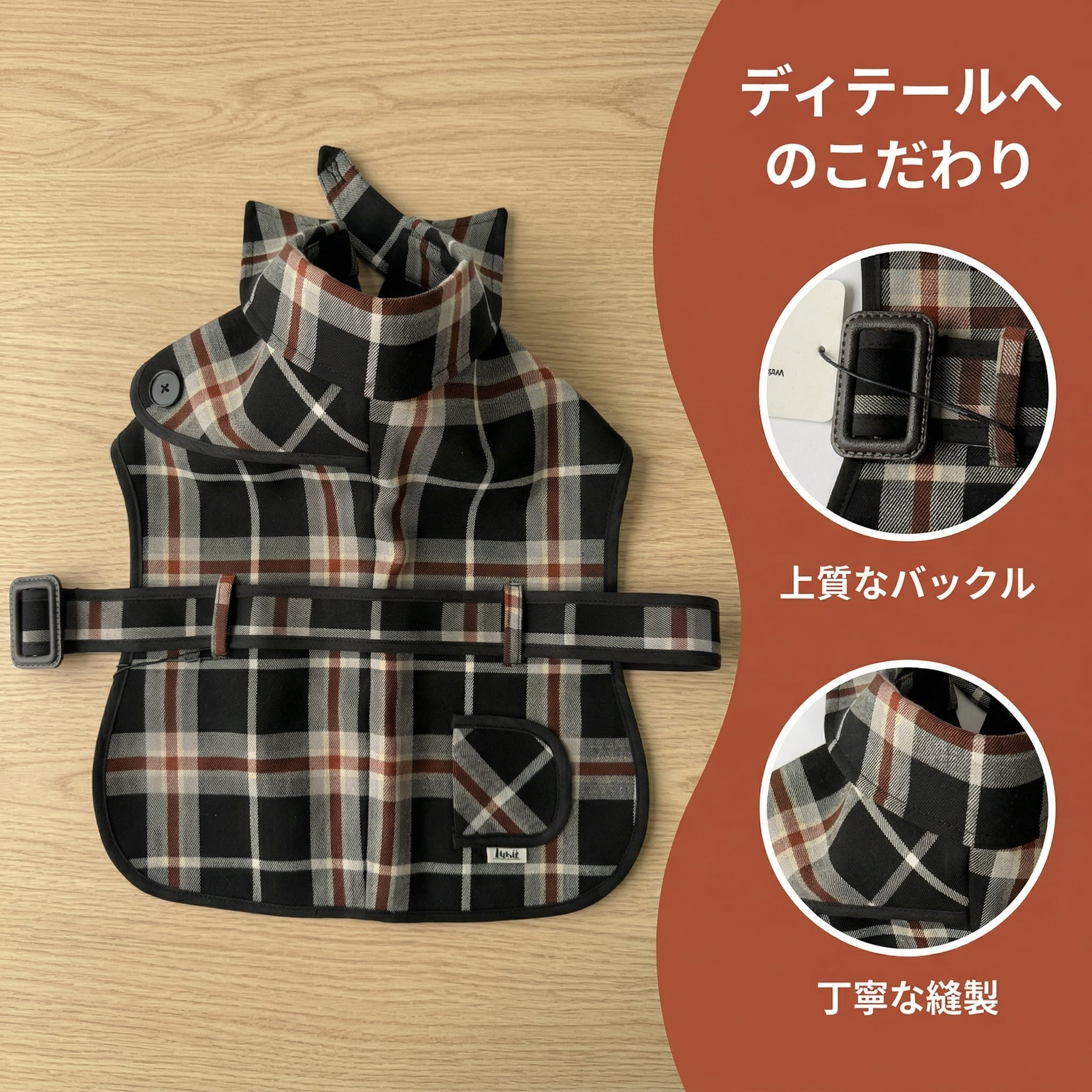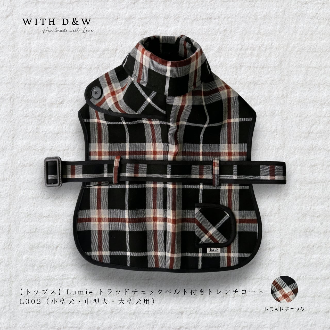 【アウター】Lumie トラッドチェックベルト付きトレンチコート L002(小型犬・中型犬・大型犬用)